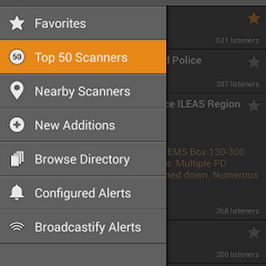 - View the top 50 scanners that have the most listeners (updated every 5 minutes).
